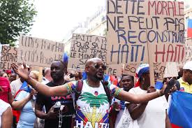 Au cœur de cette marche pacifique, organisée dans une ambiance résolument déterminée, des slogans forts s’élevaient : « Unis pour Haïti, unis pour la paix », « Marchons pour nos ancêtres », ou encore « Hollande, l’argent oui, l’armée non », en référence à l’ancienne promesse de remboursement de la dette injustement imposée à Haïti par la France au XIXe siècle.